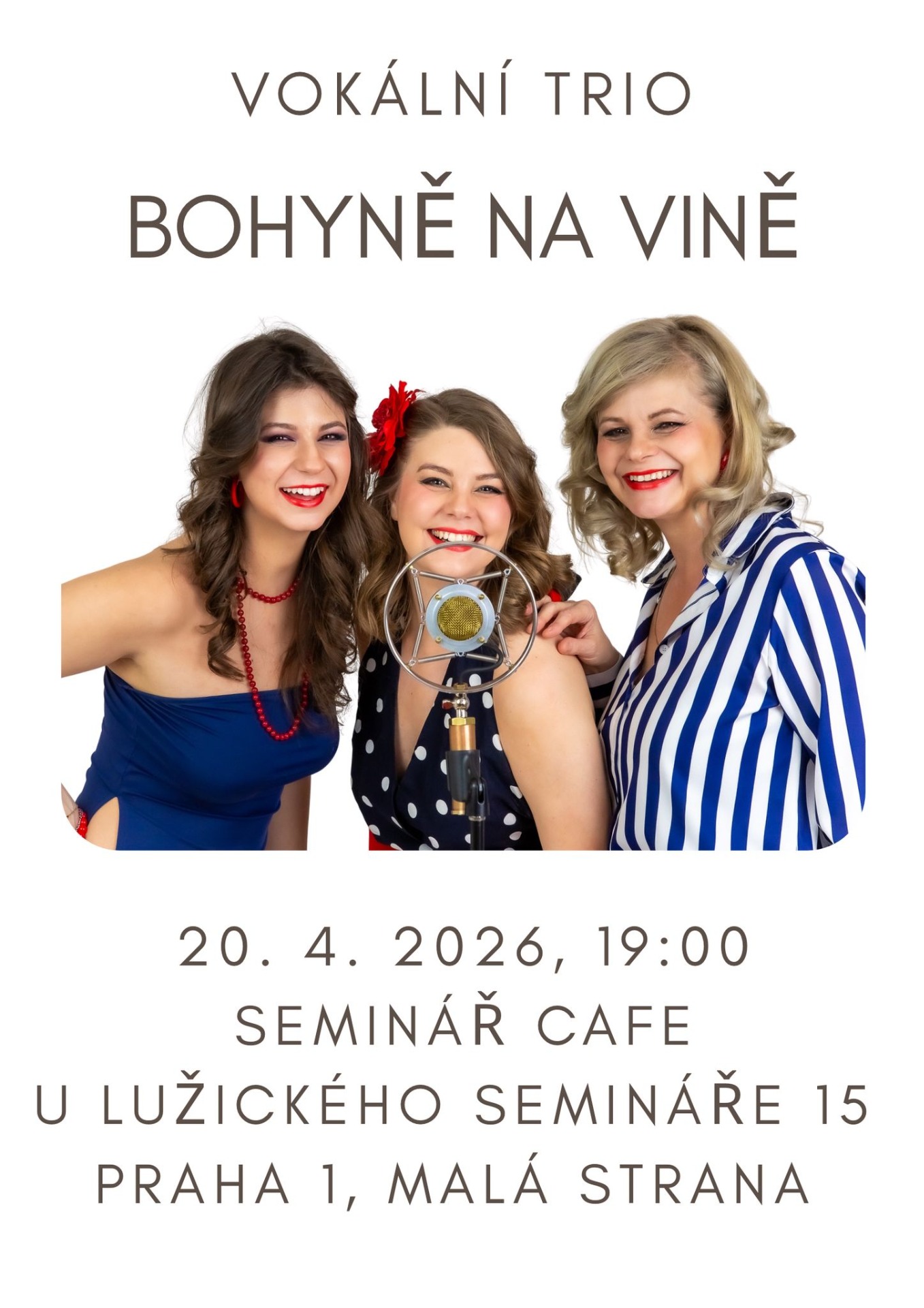 V Pondělí 20.4. vás zveme na koncert vokálního tria BOHYNĚ NA VÍNĚ.
